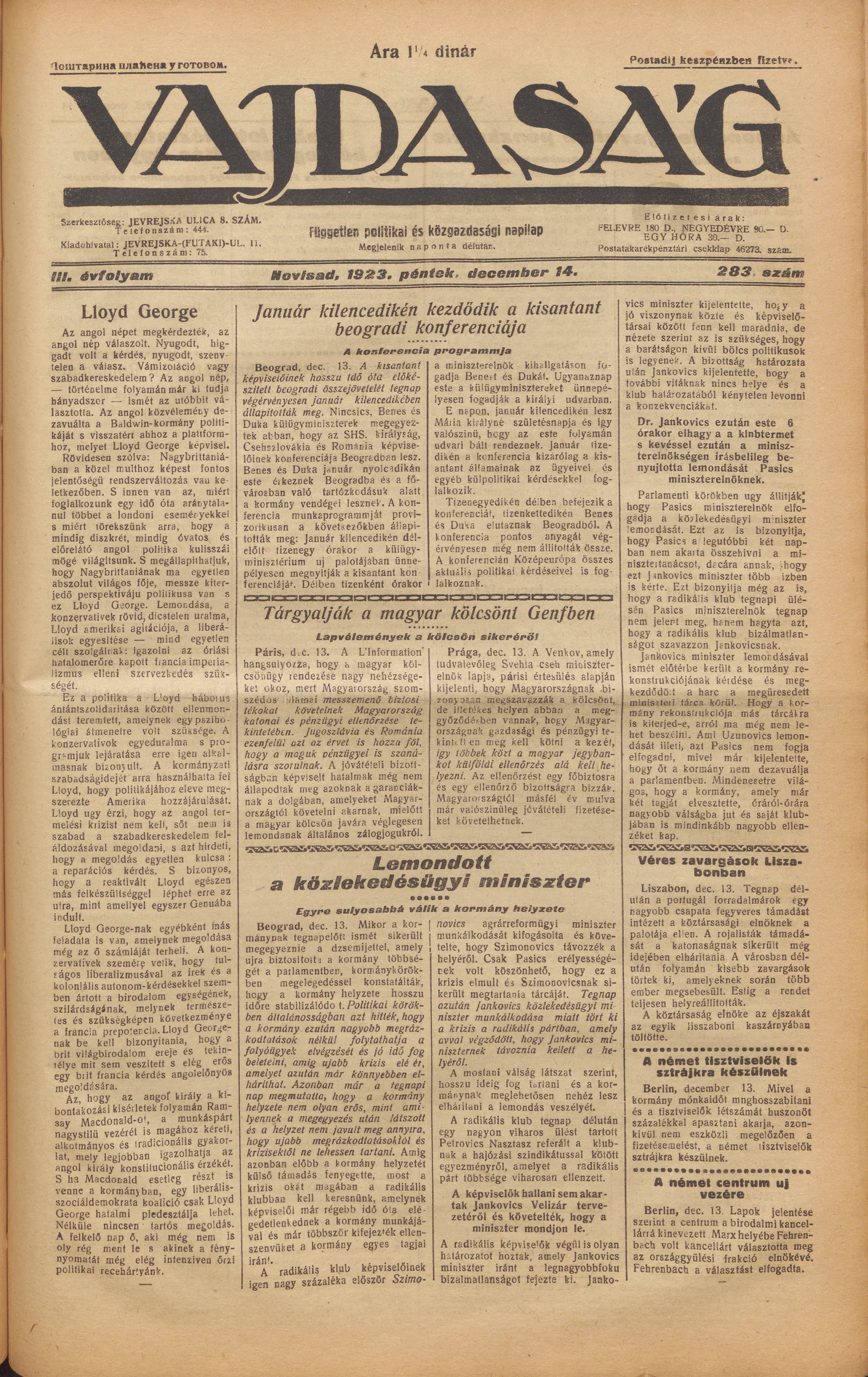 Vajdaság, 3. évf. 1923. december 14. 283. sz.