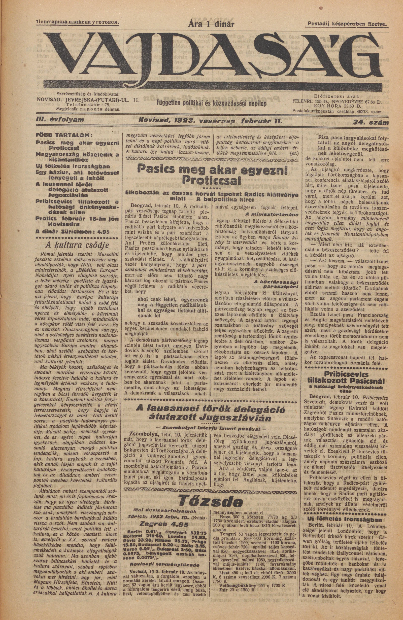 Vajdaság, 3. évf. 1923. február 11. 34. sz.