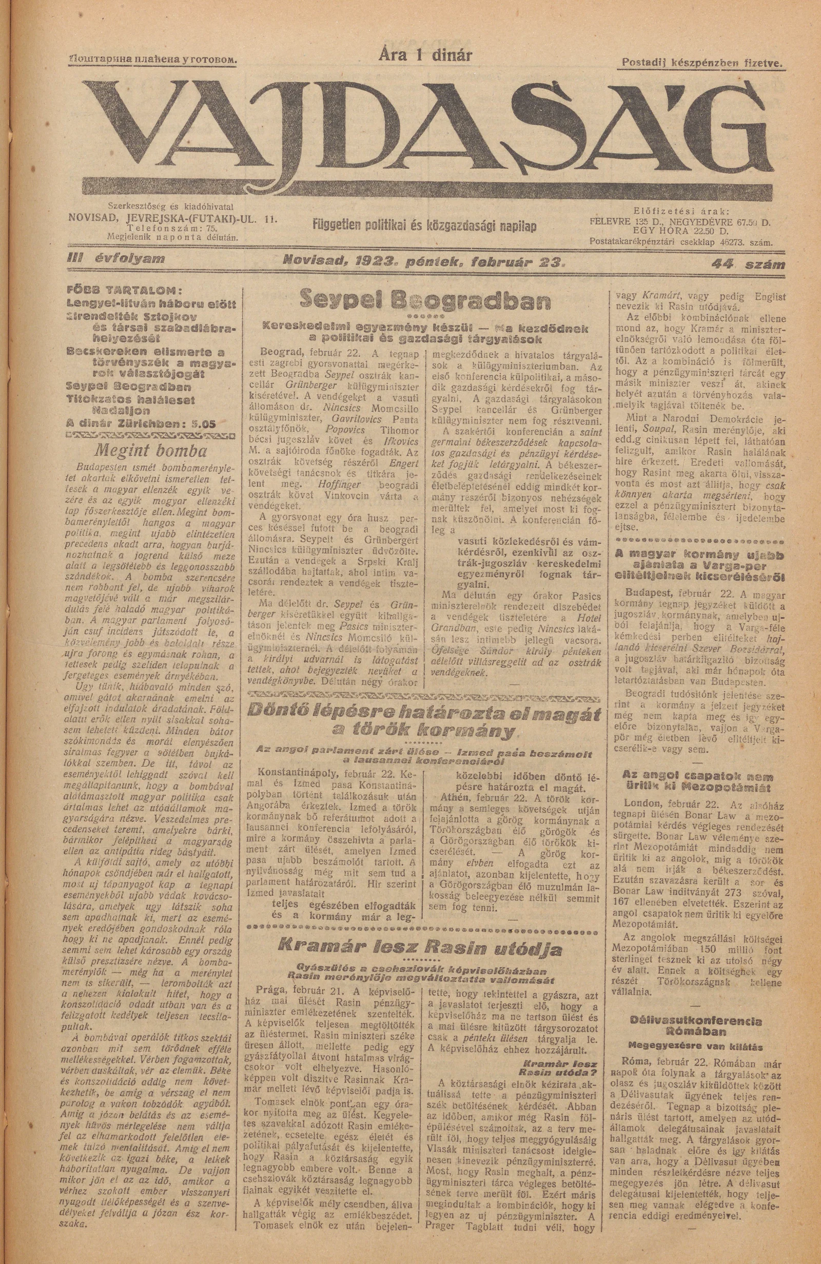 Vajdaság, 3. évf. 1923. február 23. 44. sz.