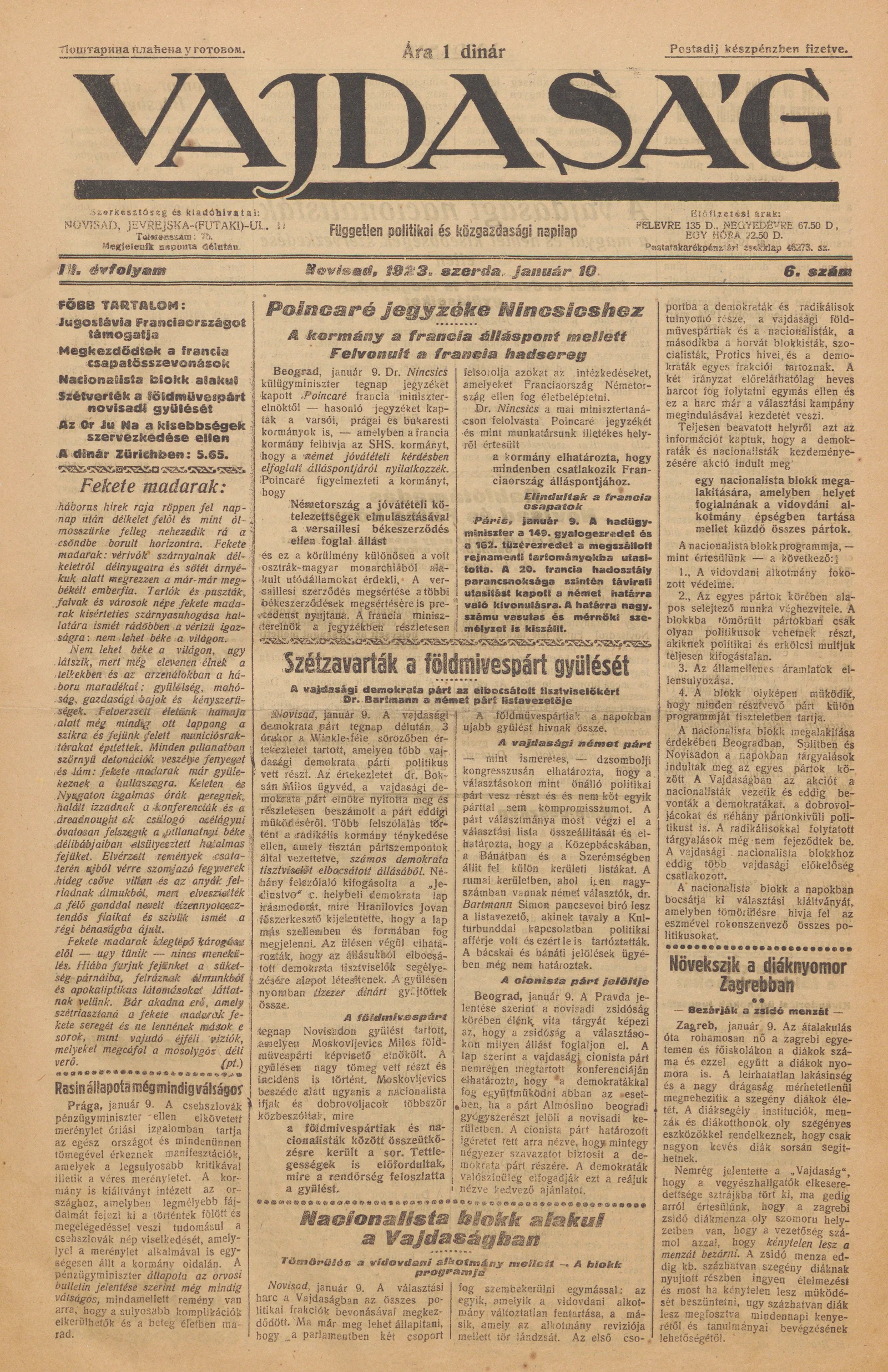 Vajdaság, 3. évf. 1923. január 10. 6. sz.