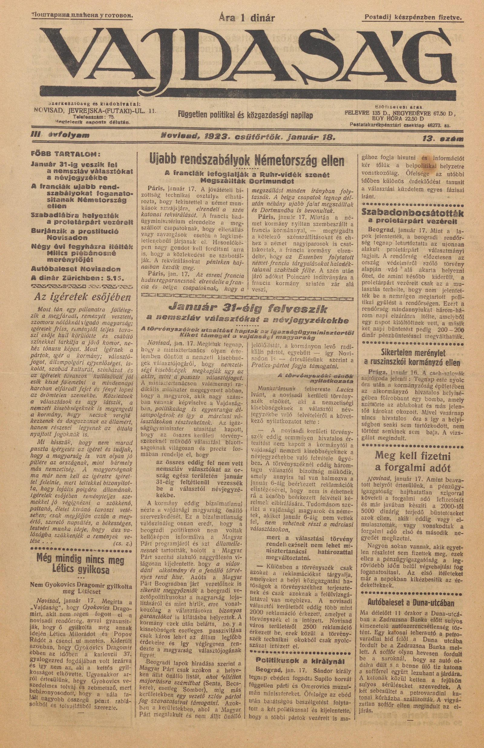 Vajdaság, 3. évf. 1923. január 18. 13. sz.
