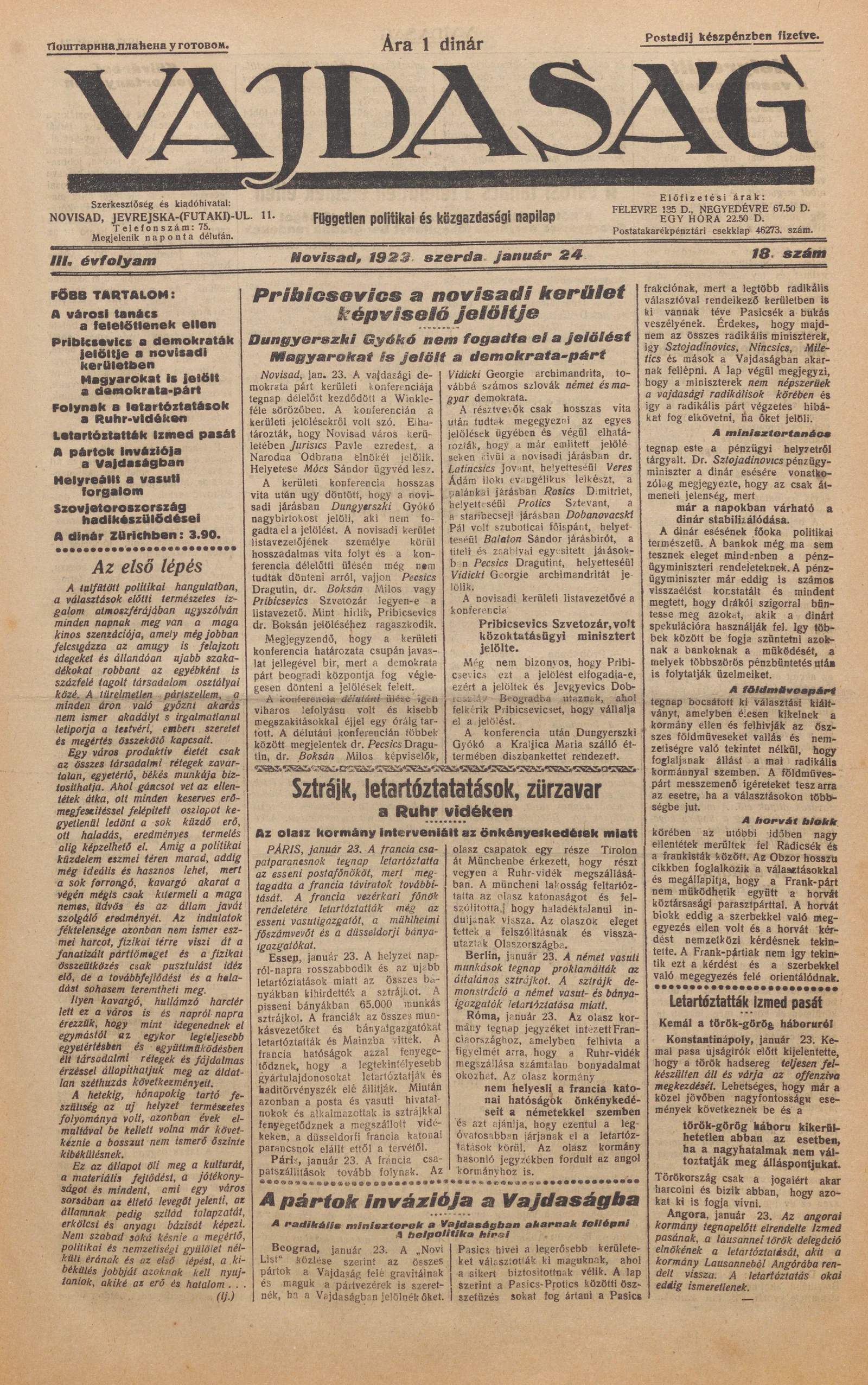 Vajdaság, 3. évf. 1923. január 24. 18. sz.
