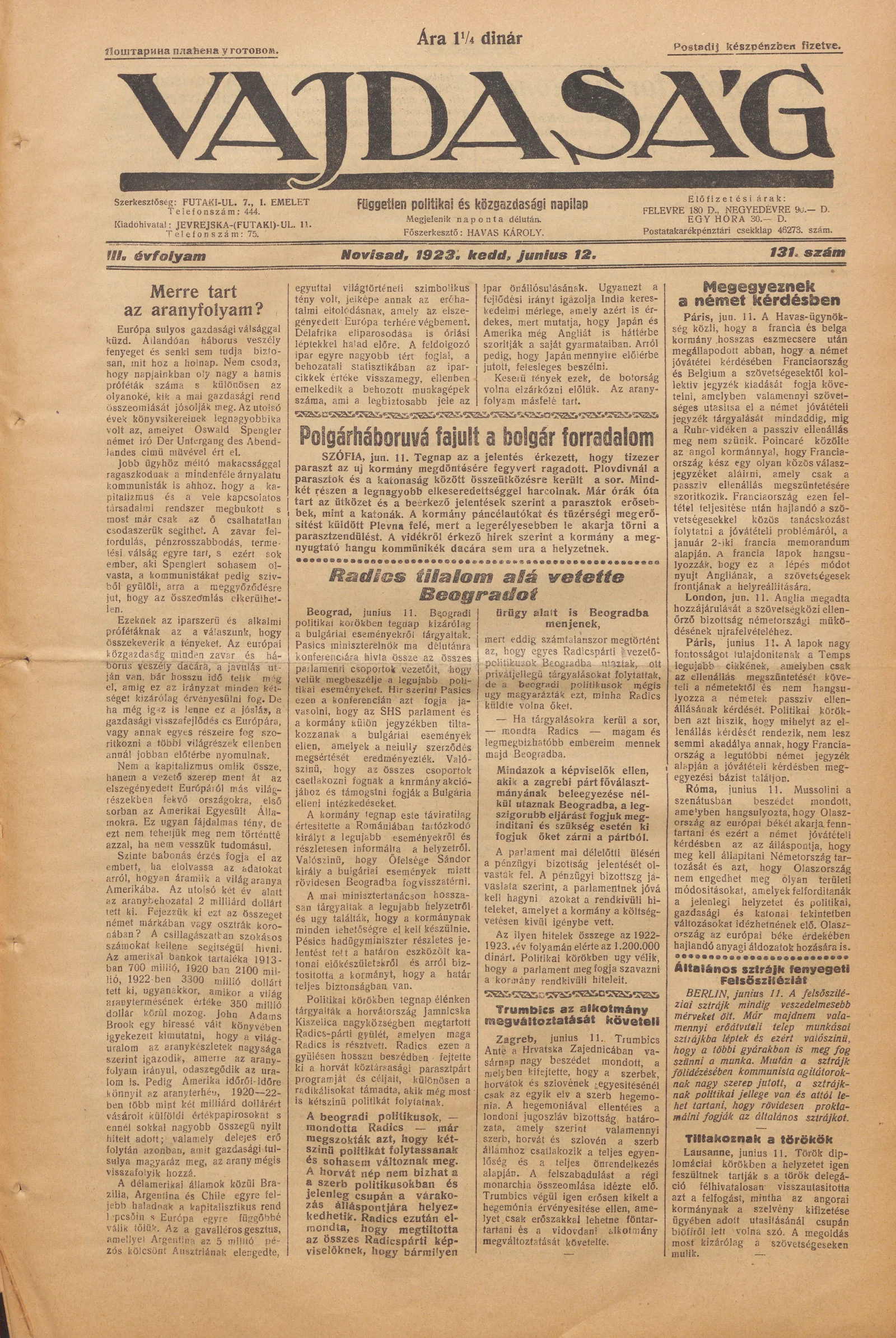 Vajdaság, 3. évf. 1923. június 12. 131. sz.