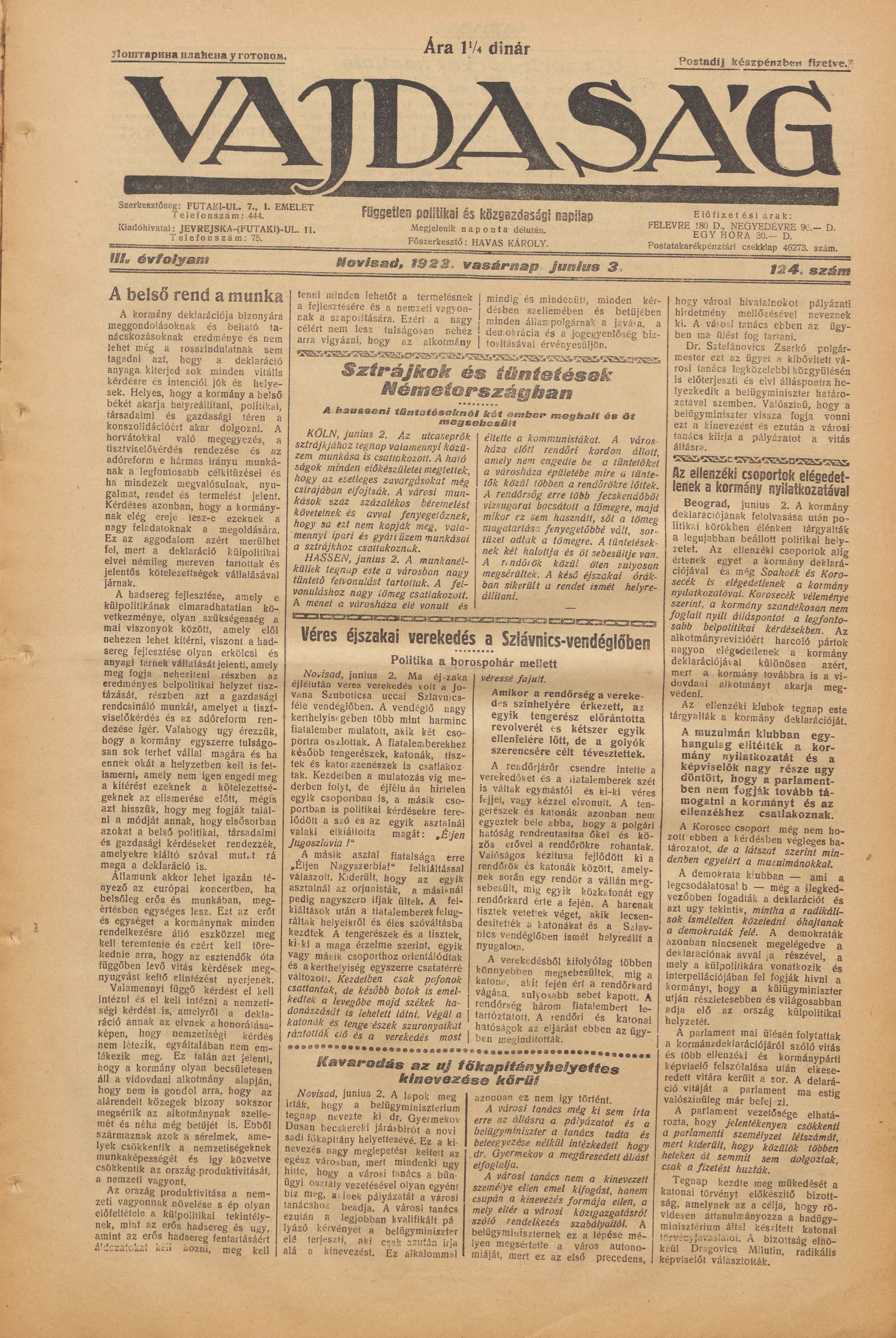 Vajdaság, 3. évf. 1923. június 3. 124. sz.