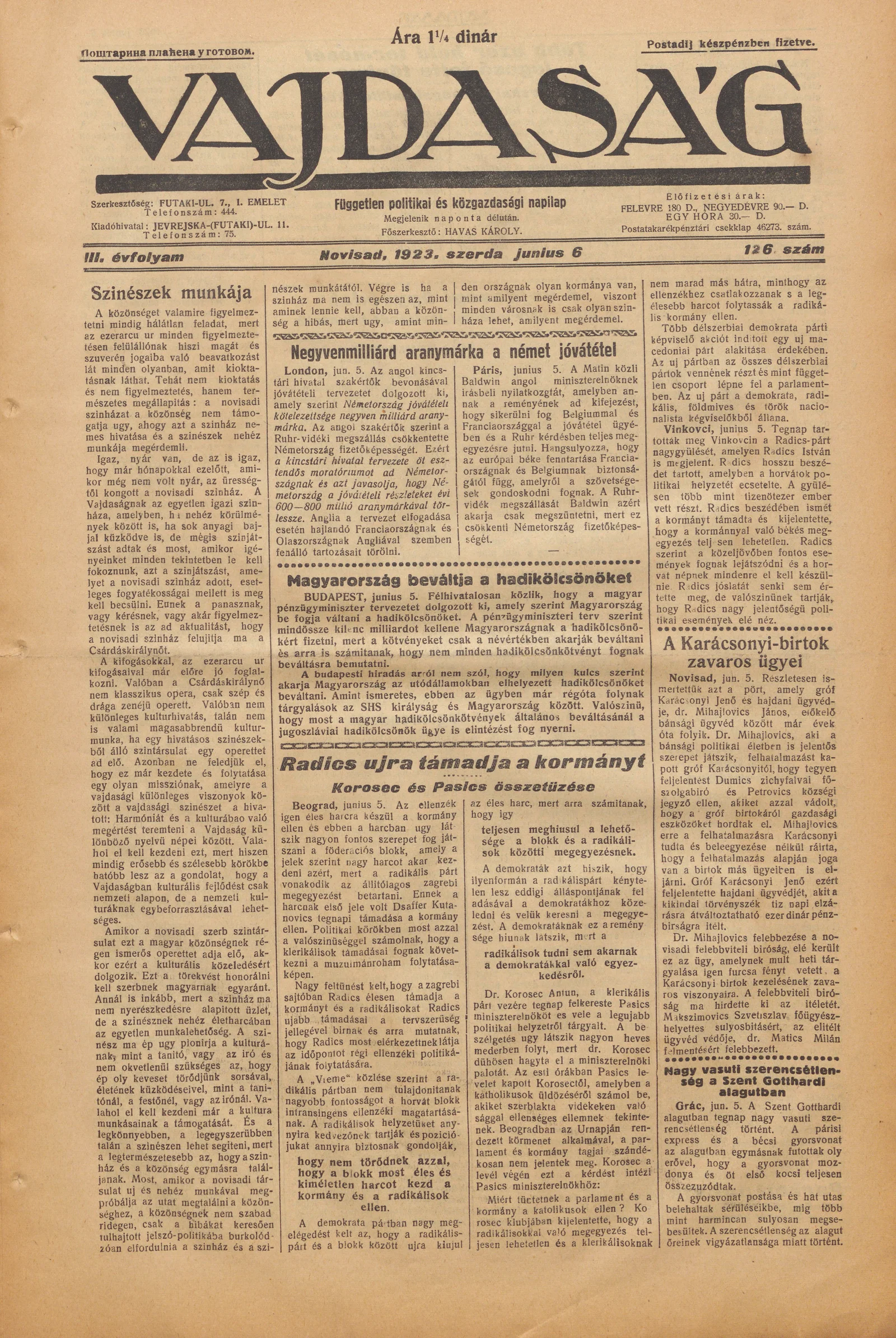 Vajdaság, 3. évf. 1923. június 6. 126. sz.