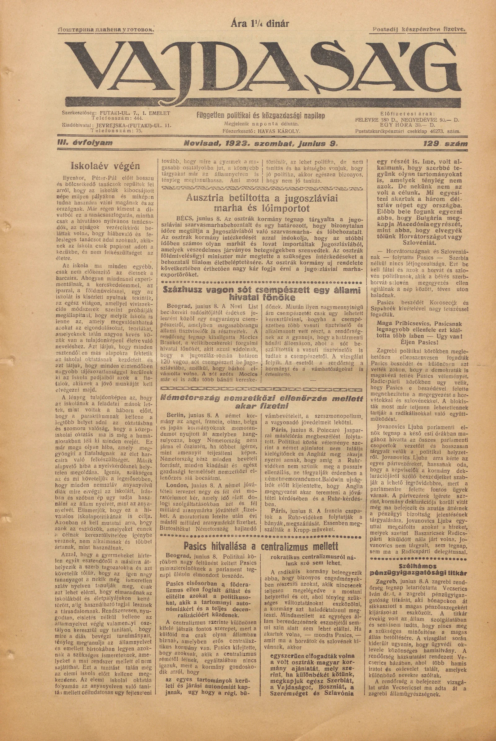 Vajdaság, 3. évf. 1923. június 9. 129. sz.
