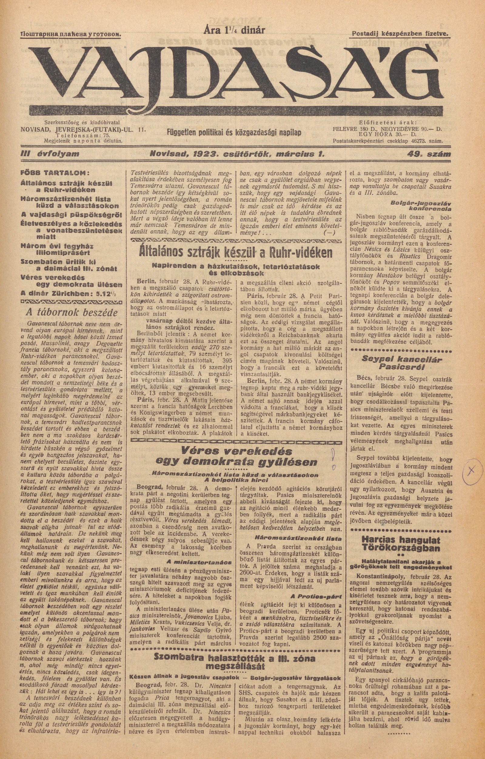 Vajdaság, 3. évf. 1923. március 1. 49. sz.