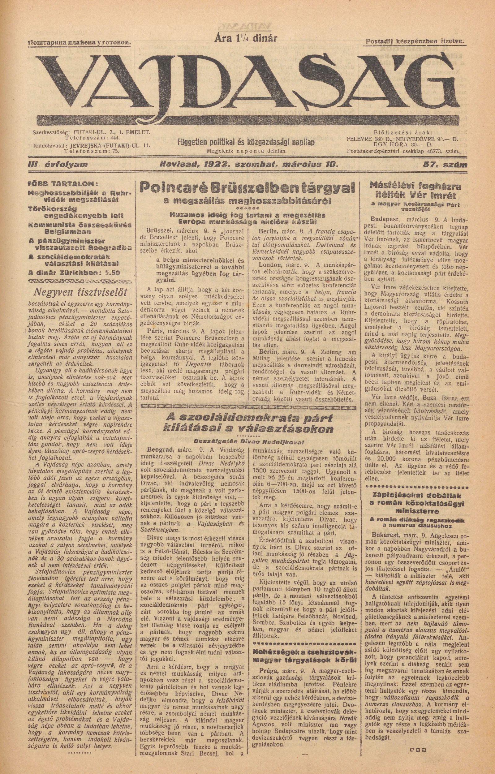 Vajdaság, 3. évf. 1923. március 10. 57. sz.