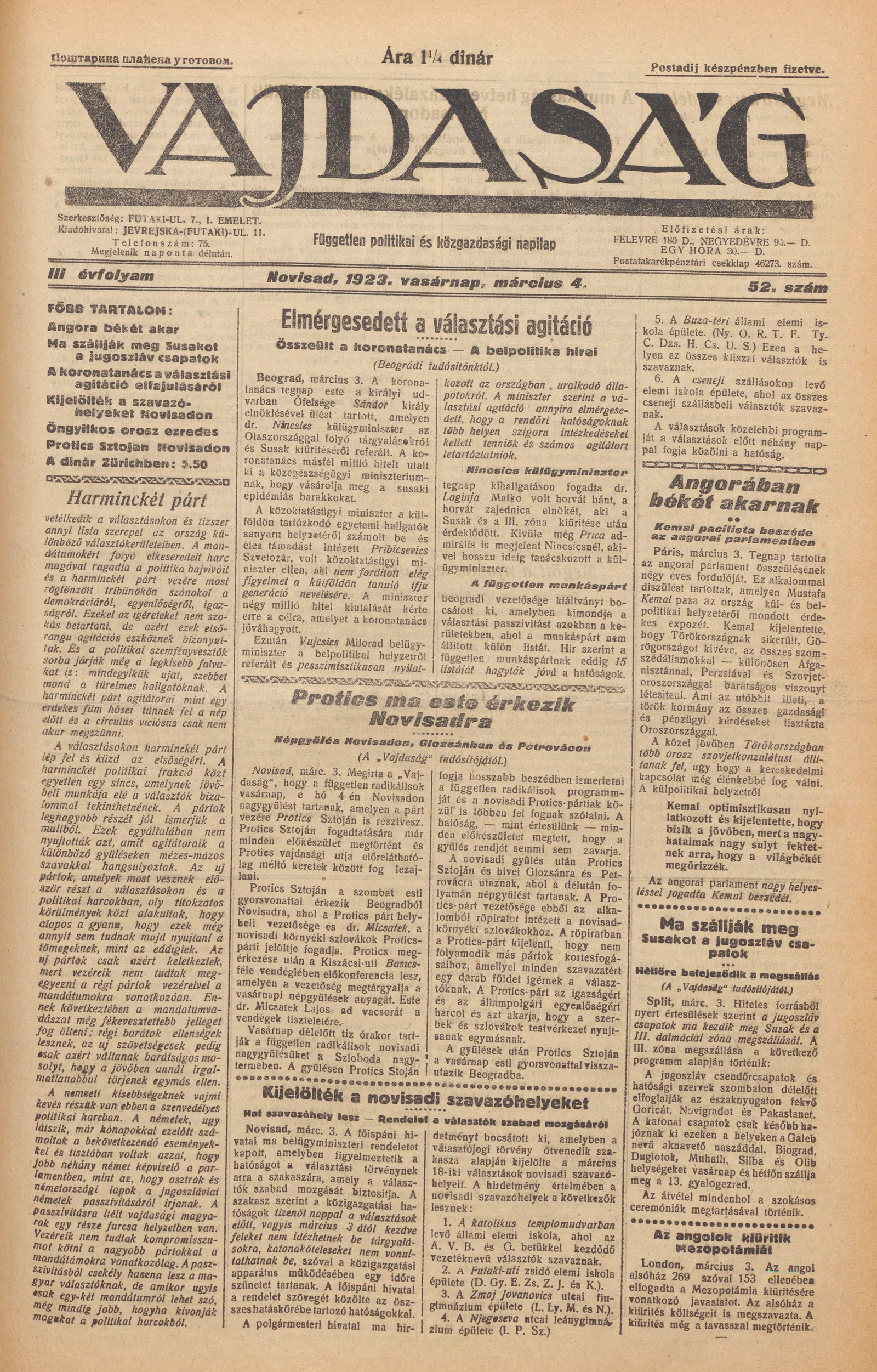 Vajdaság, 3. évf. 1923. március 4. 52. sz.