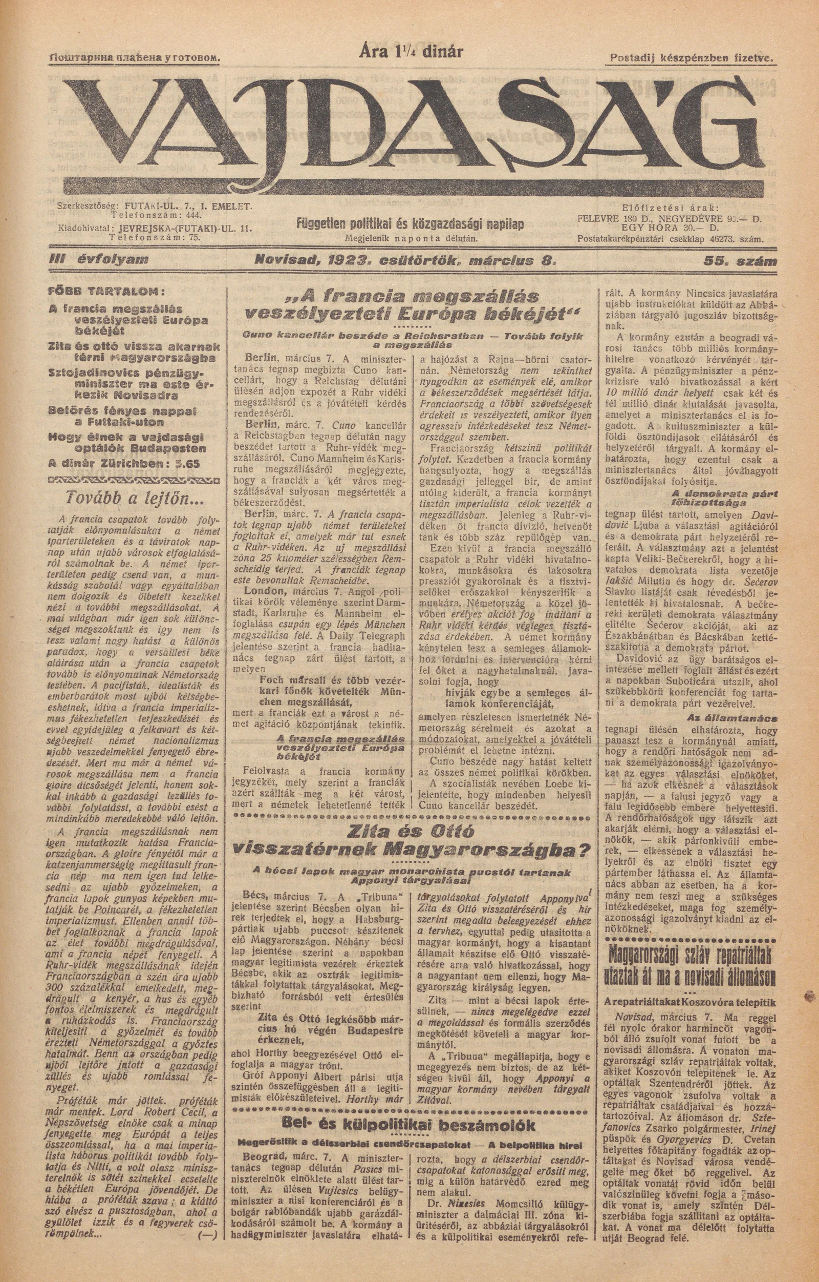 Vajdaság, 3. évf. 1923. március 8. 55. sz.