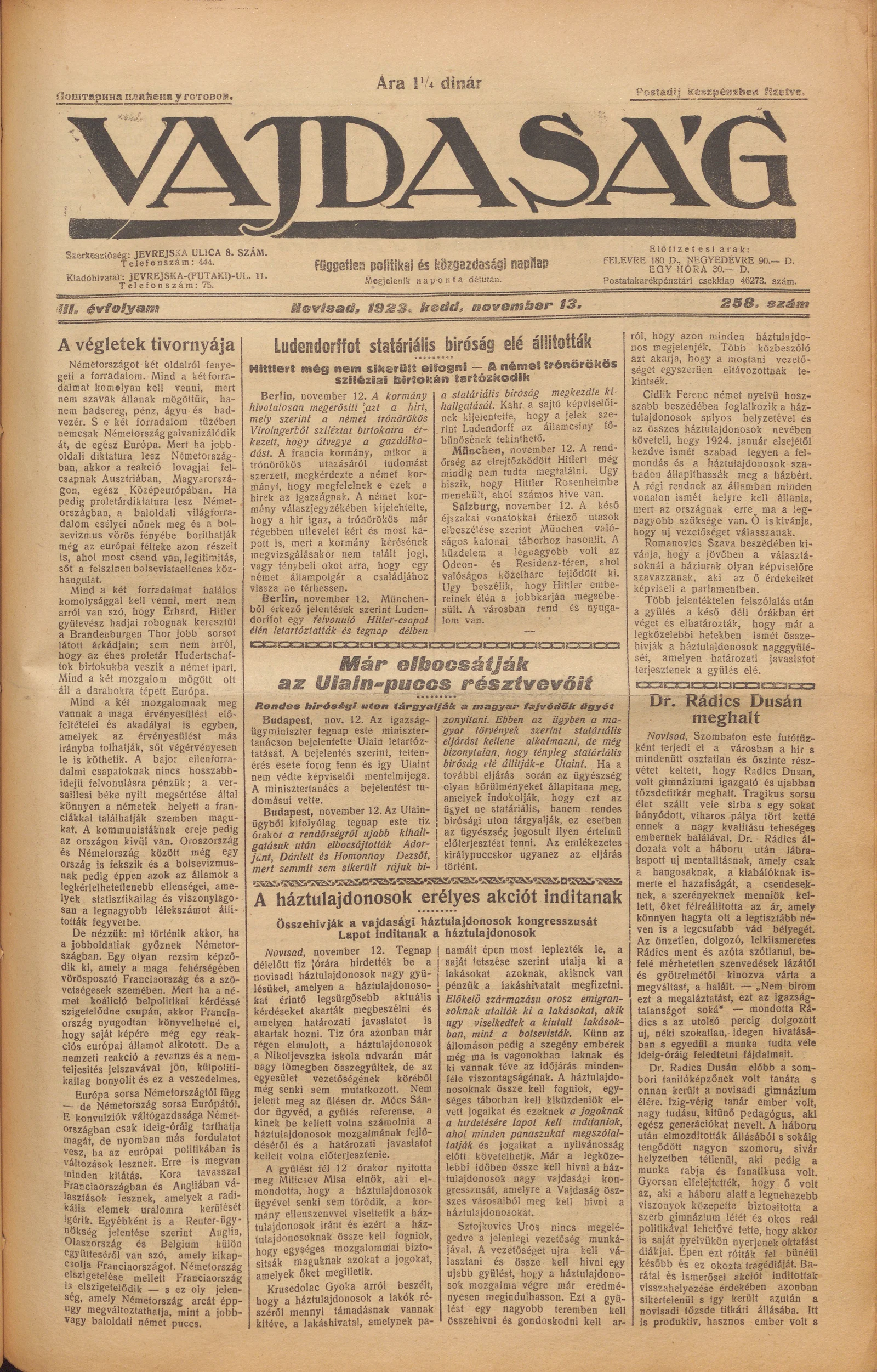 Vajdaság, 3. évf. 1923. november 13. 258. sz.