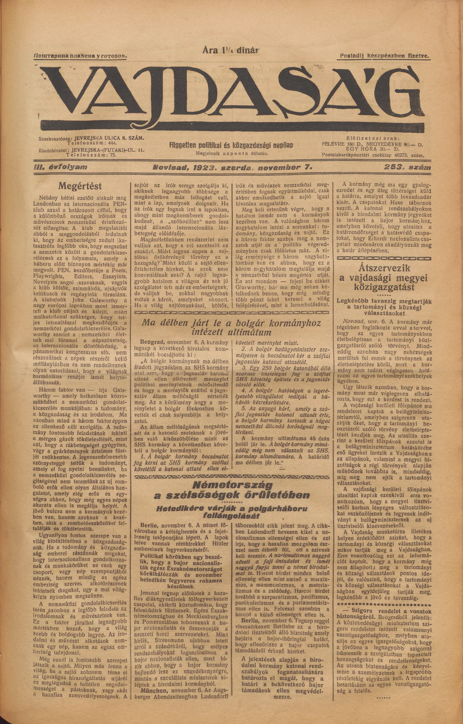 Vajdaság, 3. évf. 1923. november 7. 253. sz.