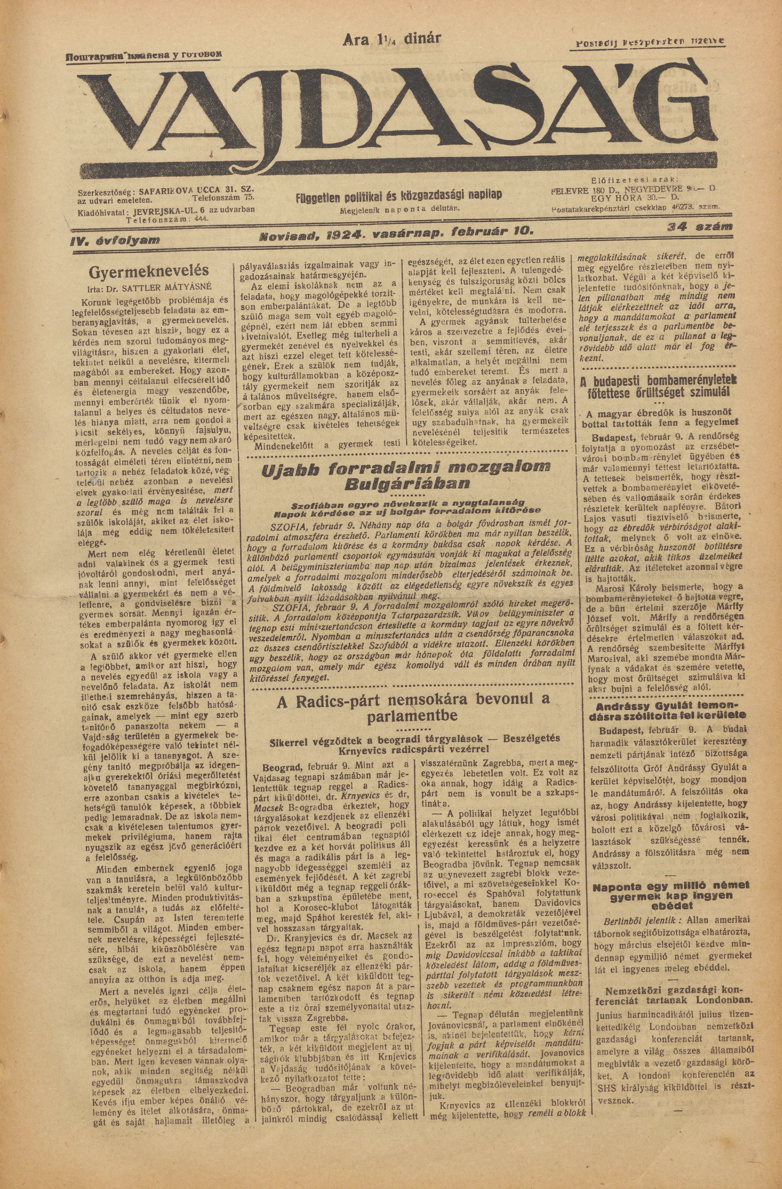 Vajdaság, 4. évf. 1924. február 10. 34. sz.