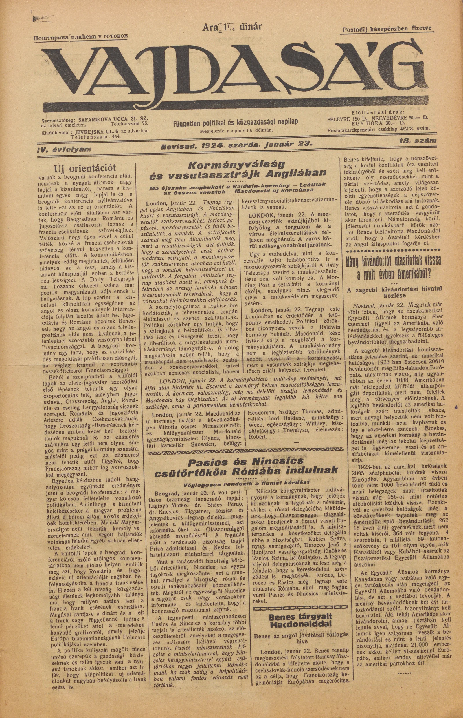 Vajdaság, 4. évf. 1924. január 23. 18. sz.