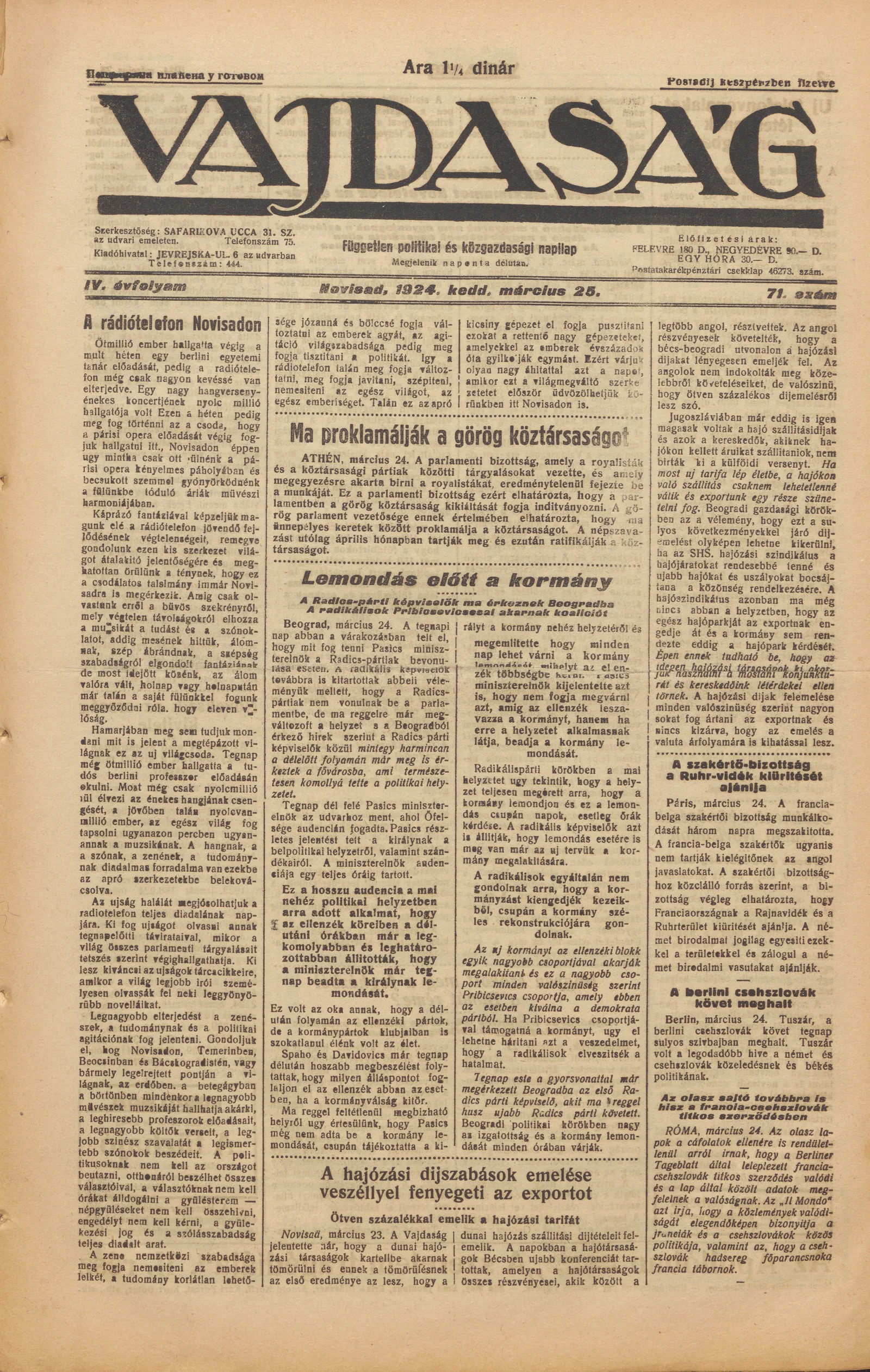 Vajdaság, 4. évf. 1924. március 25. 71. sz.