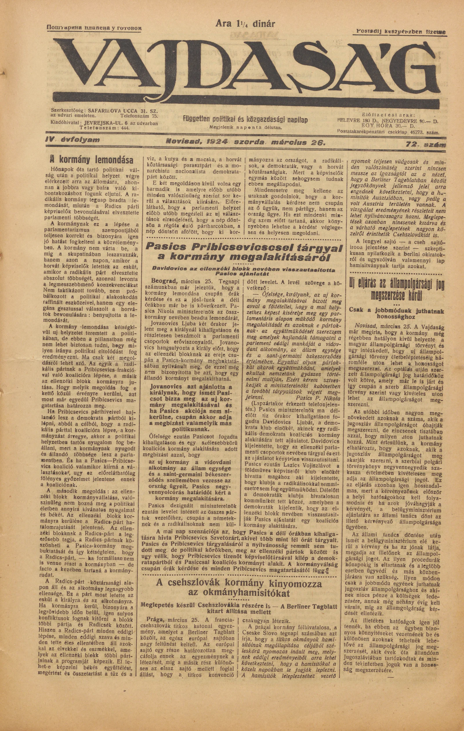Vajdaság, 4. évf. 1924. március 26. 72. sz.