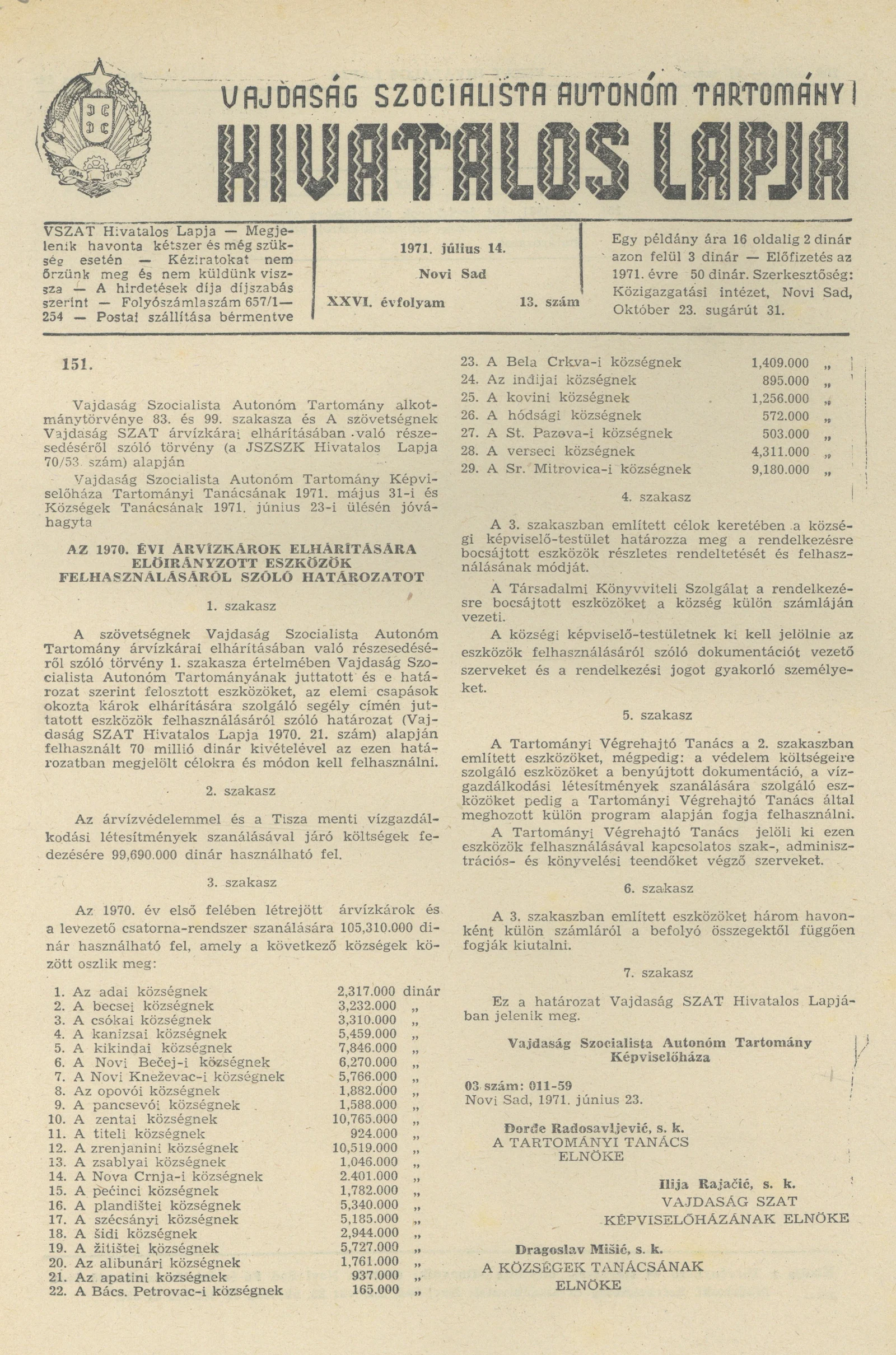 Vajdaság Szocialista Autonóm Tartomány Hivatalos Lapja, 27. évf. 1971. július 14. 13. sz. 205–206. oldal