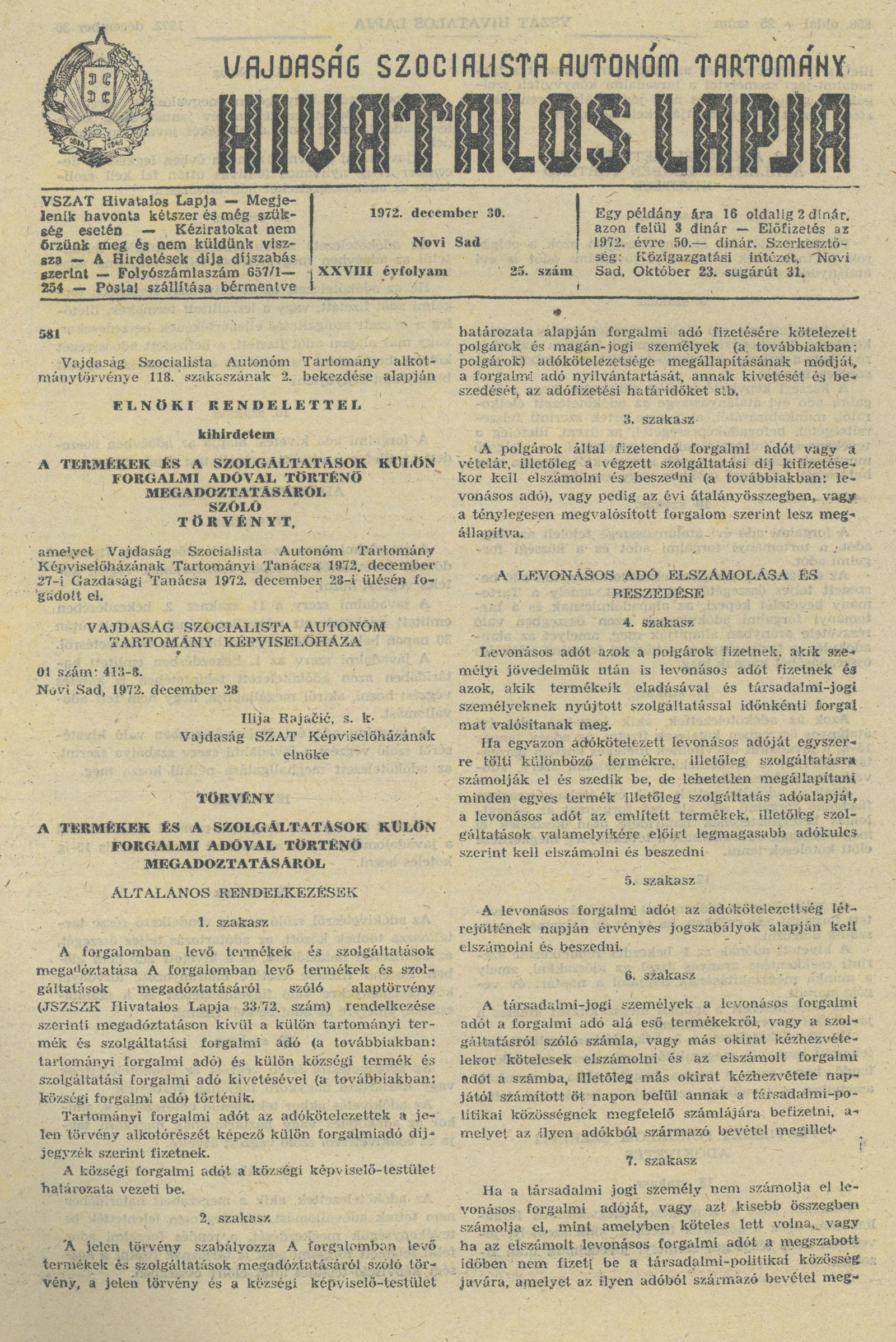 Vajdaság Szocialista Autonóm Tartomány Hivatalos Lapja, 28. évf. 1972. december 30. 25. sz. 857–868. oldal