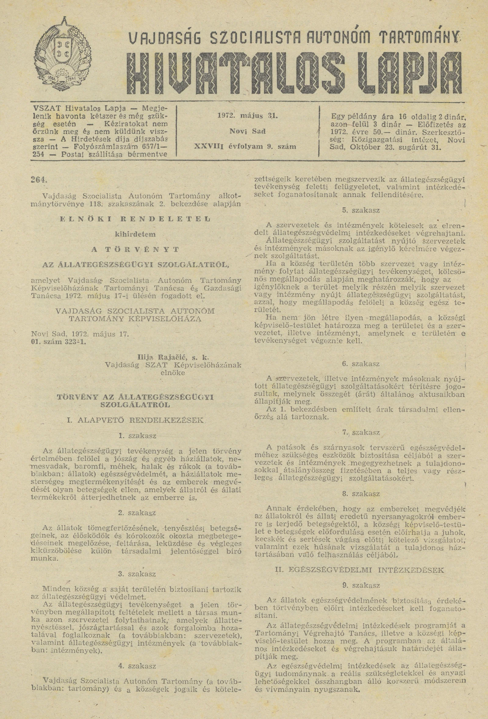 Vajdaság Szocialista Autonóm Tartomány Hivatalos Lapja, 28. évf. 1972. május 31. 9. sz. 389–400. oldal