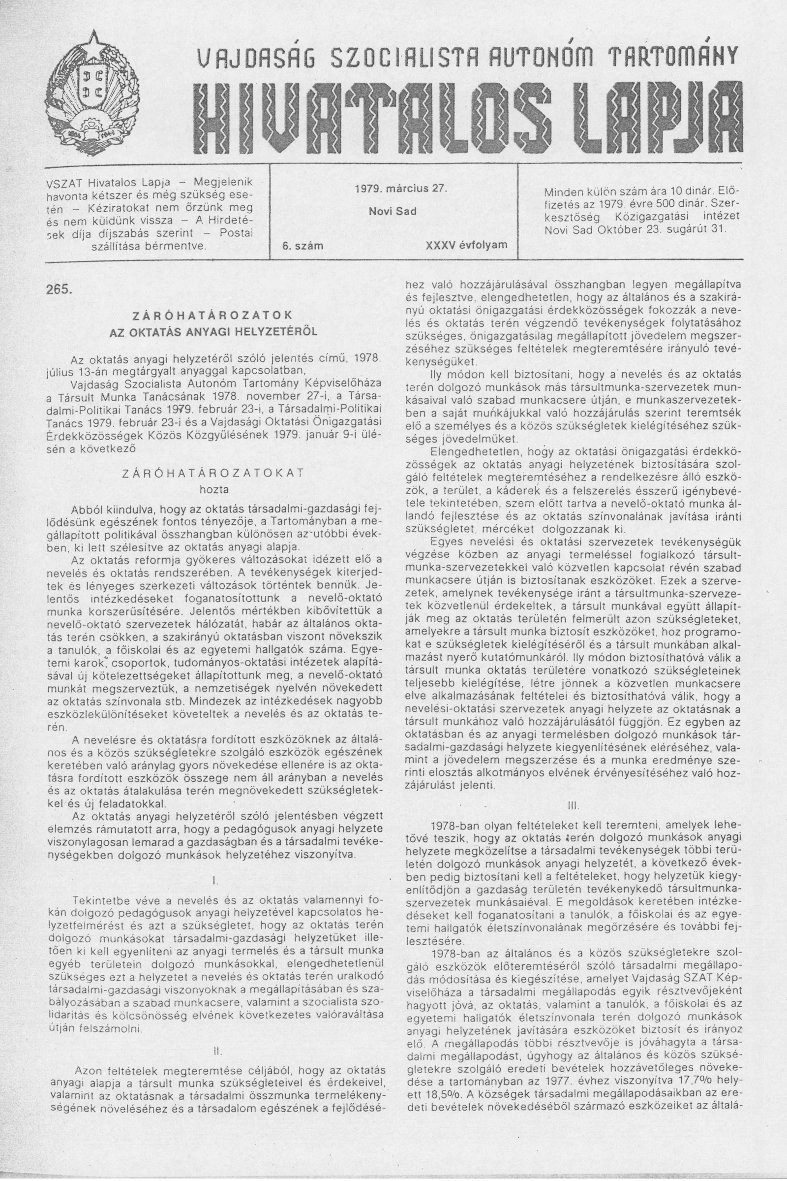 - Záróhatározat az oktatás anyagi helyzetéről369