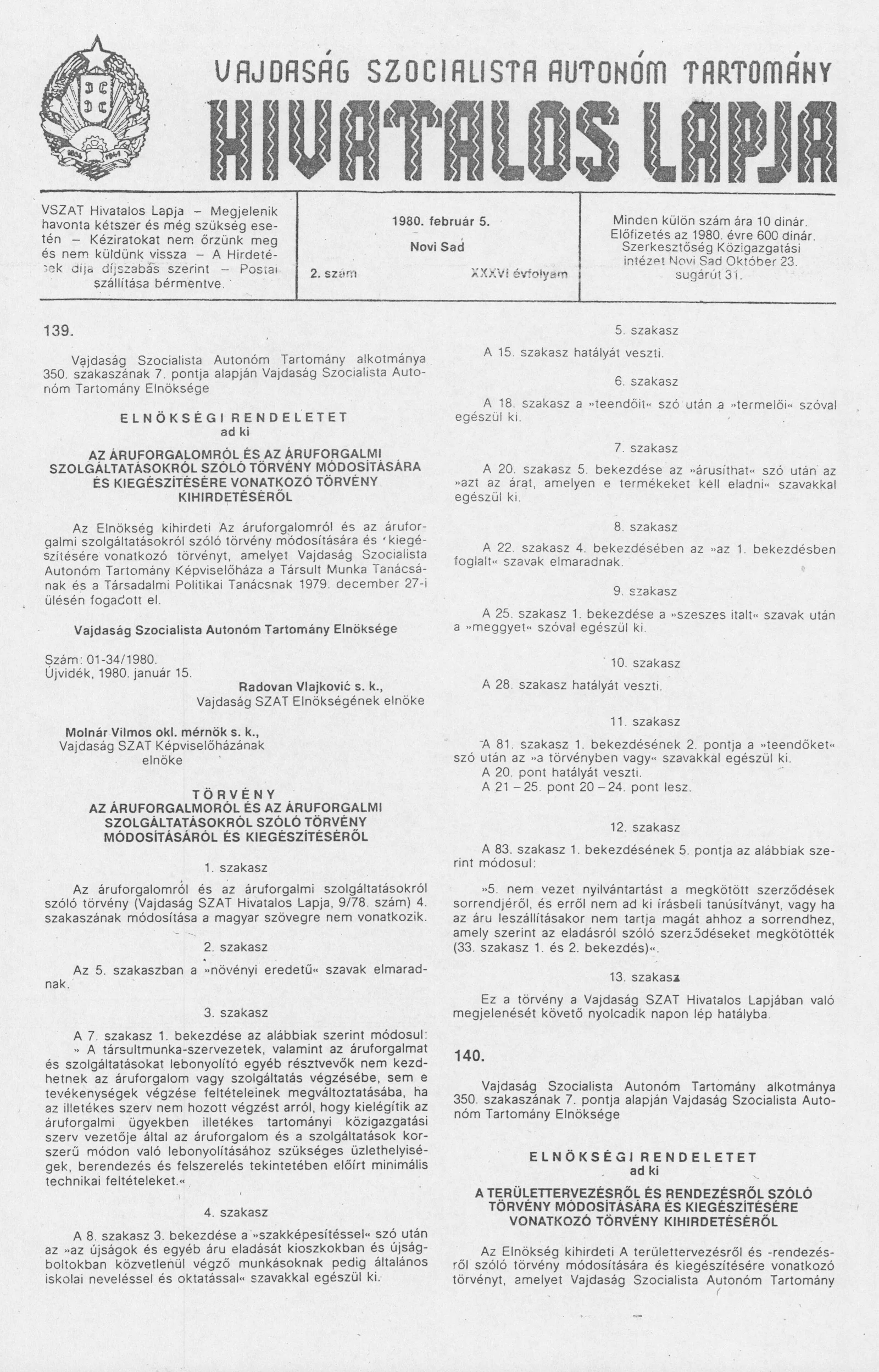 - Határozat a lecsapolási és a szennyvíz elvezetési térítmény magasságának megállapítására Ada, Zenta, Kanizsa, Bácstopolya és Kishegyes község belvízterületén az 1980. évben122