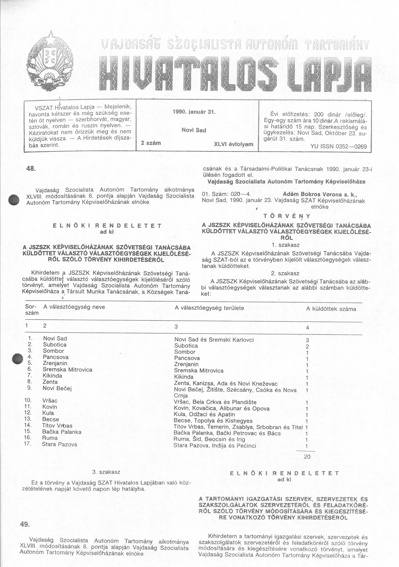 Vajdaság Szocialista Autonóm Tartomány Hivatalos Lapja, 46. évf. 1990. január 31. 2. sz.