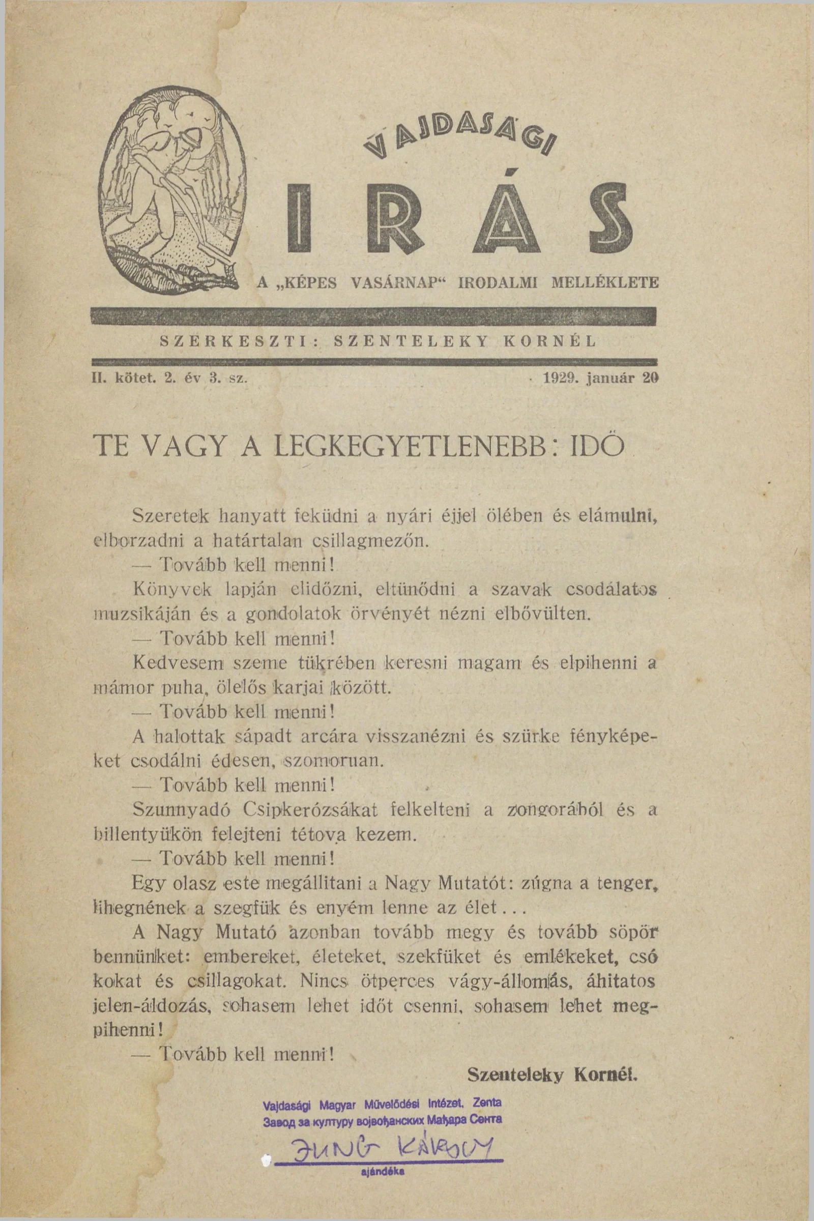 Vajdasági Írás, 2. évf. 1929. január 20. 3. sz. 65–96. oldal