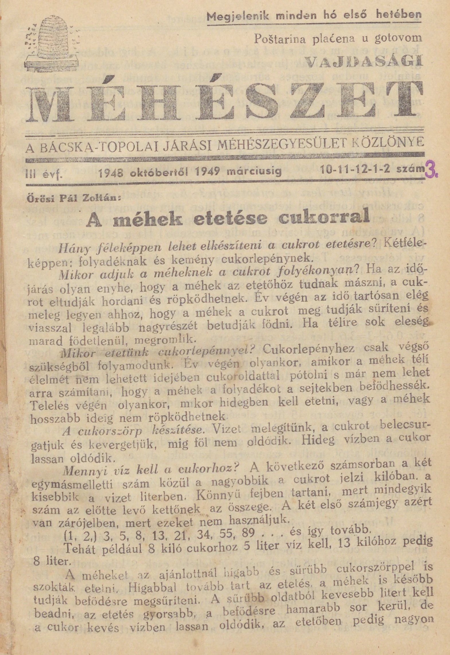 Vajdasági méhészet Bácska Topolya, 3. évf. 1948. október 1. – 1949. március 1. 10. sz.